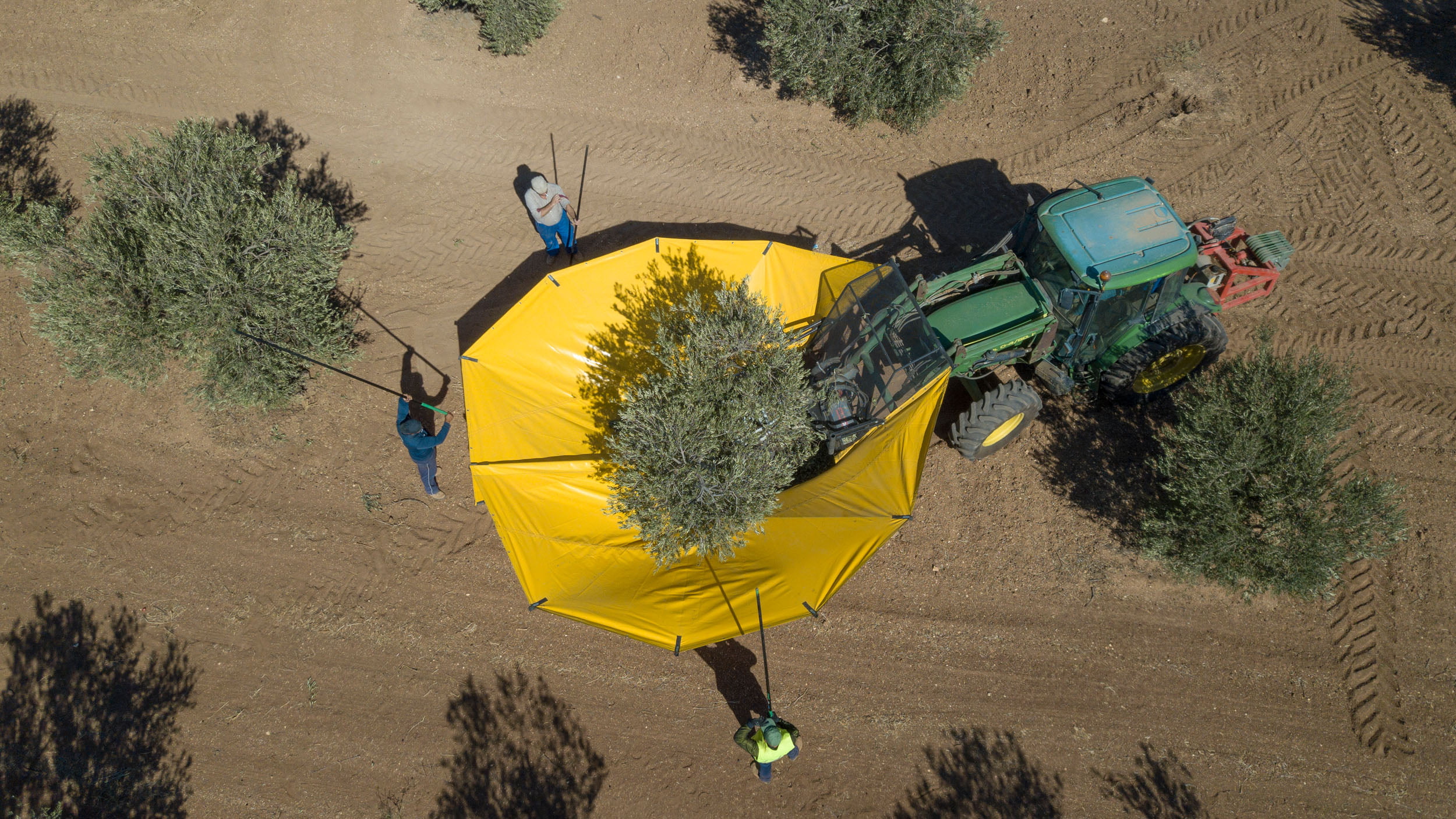 En muchos lugares, para producir Aceite Premium, se recoge la aceituna a mano para evitar pisarla y que la calidad del aove empeore. En Peña Luna, para evitar pisar la aceituna y que esta esté en perfectas condiciones utilizamos un «paraguas mecánico» que abraza la oliva e impide que las aceitunas caigan al suelo, por lo que nunca se llegan a pisar